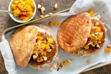 Maak eens wat anders met dit leuke recept voor een kip tandoori burger. Met kipgehakt, kruiden, zelfgemaakte koolsla en mangosalsa op een gebakken naanbroodje of pita. Dat klinkt toch heerlijk?