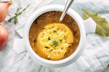 Maak zelf in 1 uurtje deze heerlijke traditionele Franse uiensoep met stokbrood en gegratineerde kaas!