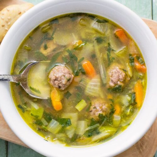 Een snel en makkelijk recept voor heerlijke groentesoep met zelfgemaakte balletjes van rundergehakt. Traditionele, verwarmende groentesoep om lekker zelf thuis te maken. Handig voor wat extra vitamines.