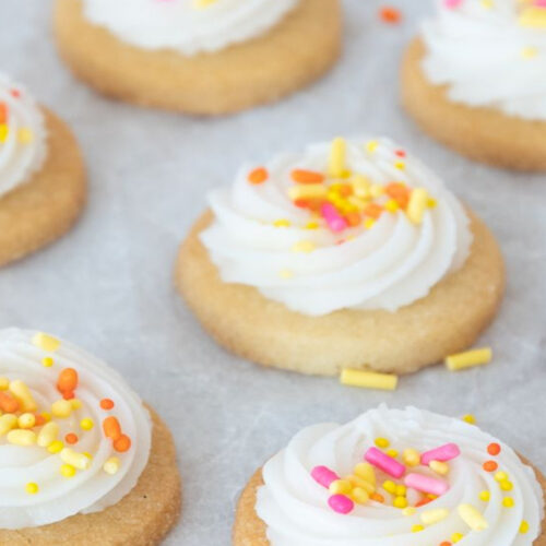 - Verdeel de sprinkles over de koekjes en laat de crème uitharden.