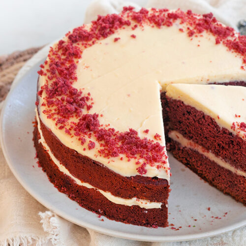 Verwen jezelf met deze smeuïge red velvet taart, met een romige roomkaas topping en een vleugje cacao. Een perfecte traktatie voor speciale gelegenheden! En super leuk om te maken.